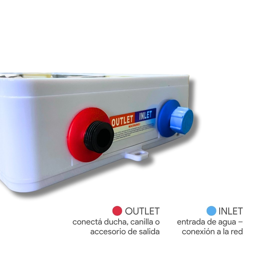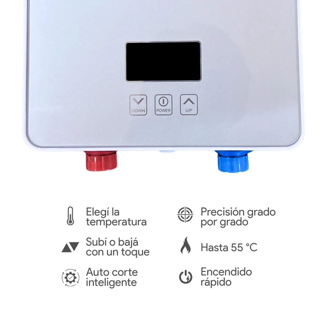 En condiciones normales de uso, la temperatura máxima de salida de agua es de 55 °C, gracias a su sistema de protección contra sobrecalentamiento que evita riesgos de quemaduras.