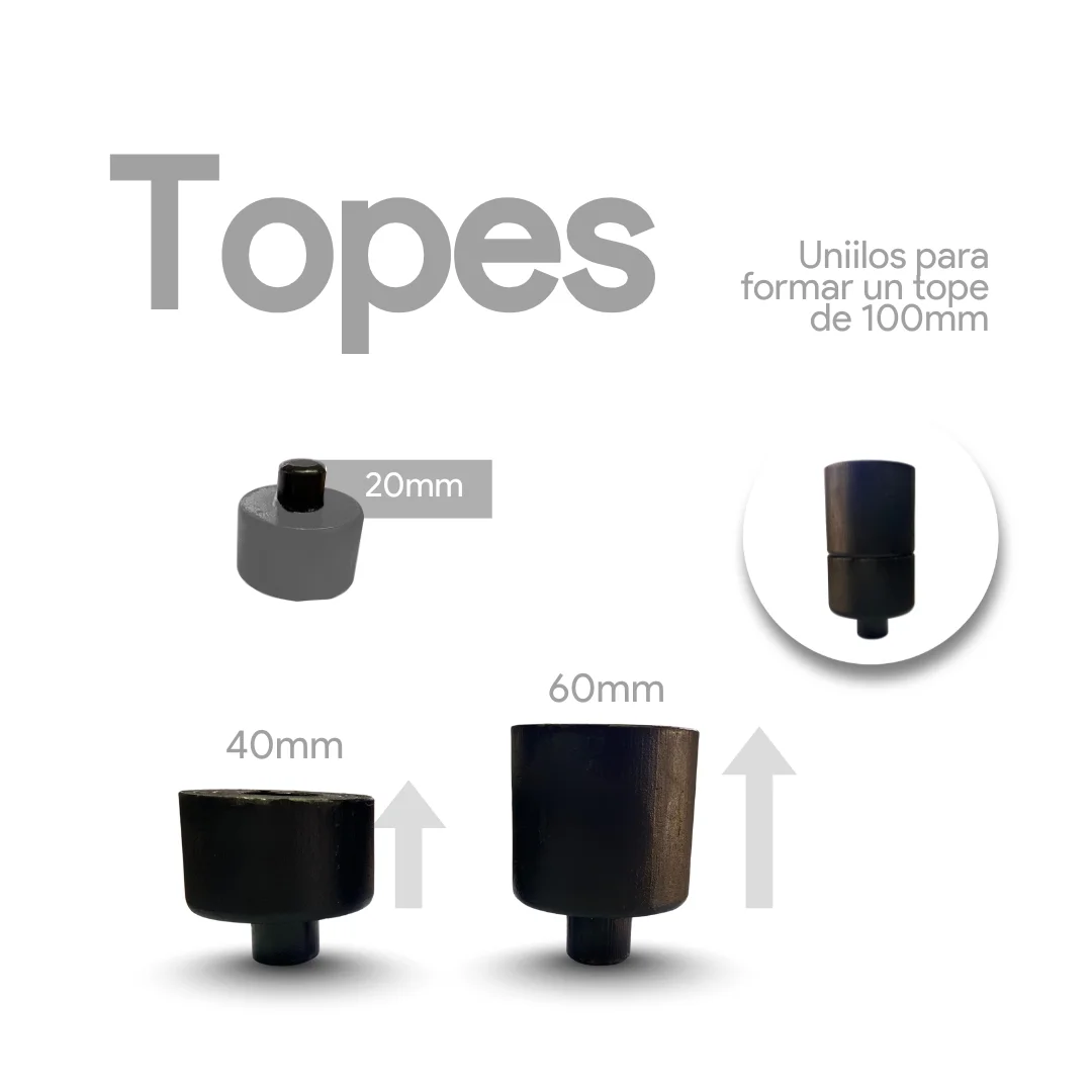 - Topes incluidos: 60 x 65 mm, 40 x 65 mm (combinados 100 x 65 mm)