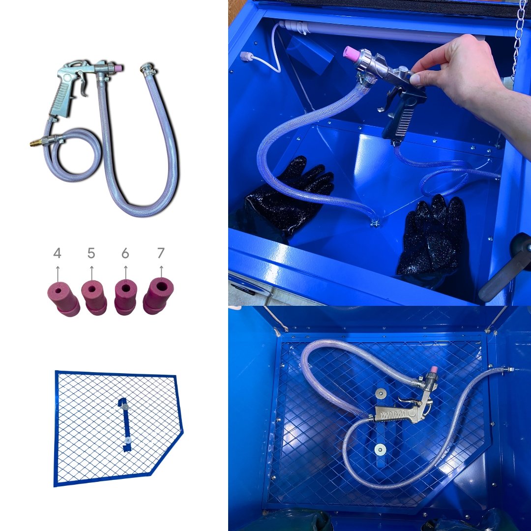 - Capacidad de abrasivo: 2 galones / 7,5 litros