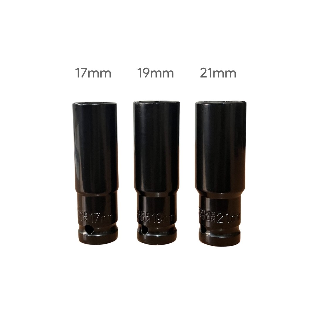 - Dados/tubos de impacto: 17 / 19 / 21 mm