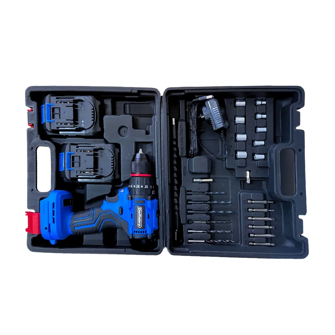 Taladro inalámbrico Brushless con maletín y kit de accesorios: listo para cualquier trabajo. Diseñado para usuarios exigentes que buscan rendimiento, versatilidad y comodidad. Su motor sin escobillas ofrece mayor vida útil y potencia constante.